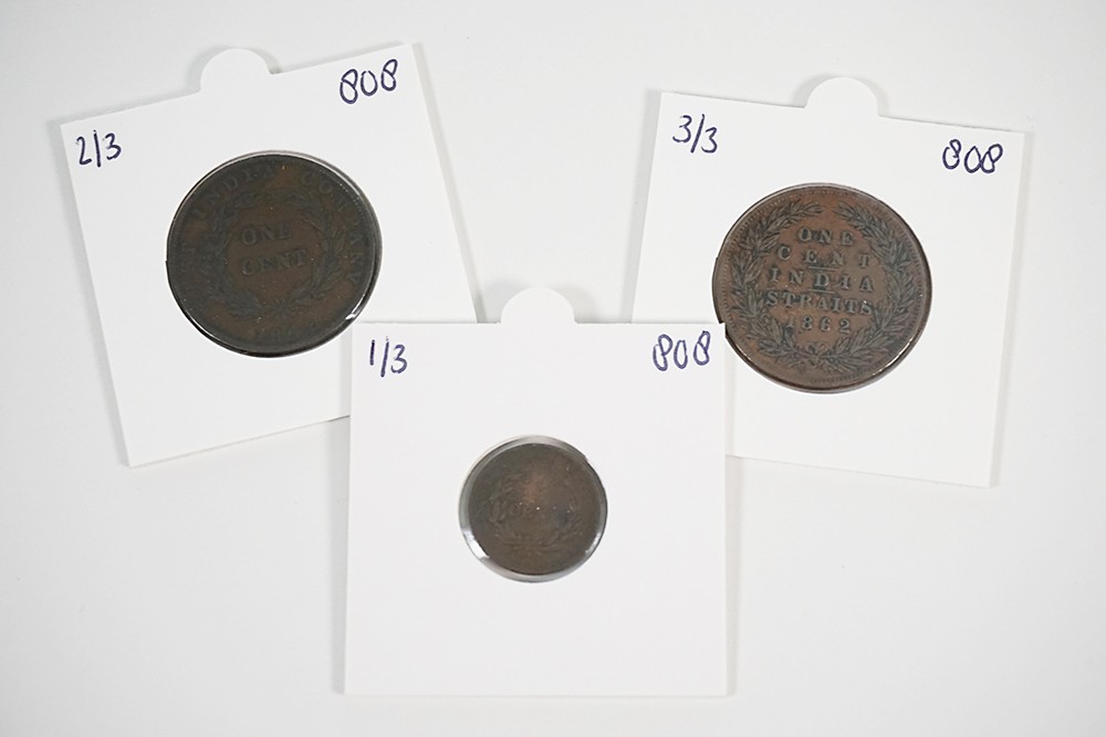 Lot (3) ½ Cent 1845; Cent 1845; Cent 1862. KM 2, 3, 6. Fine, VF.