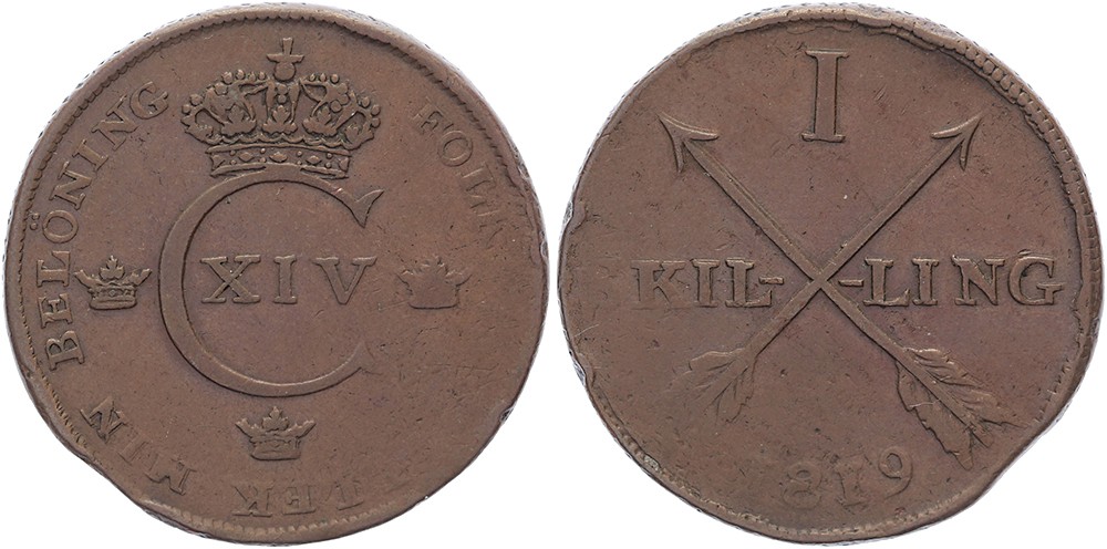 I Skilling 1819. Partly weak strike. KM 597. EF.