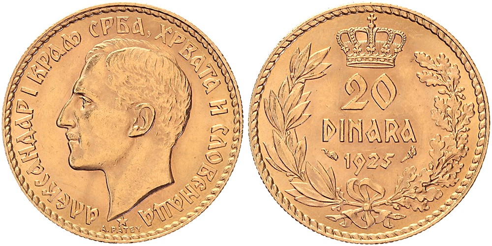 20 Dinars 1925. Fr. 3; KM 7. Unc.