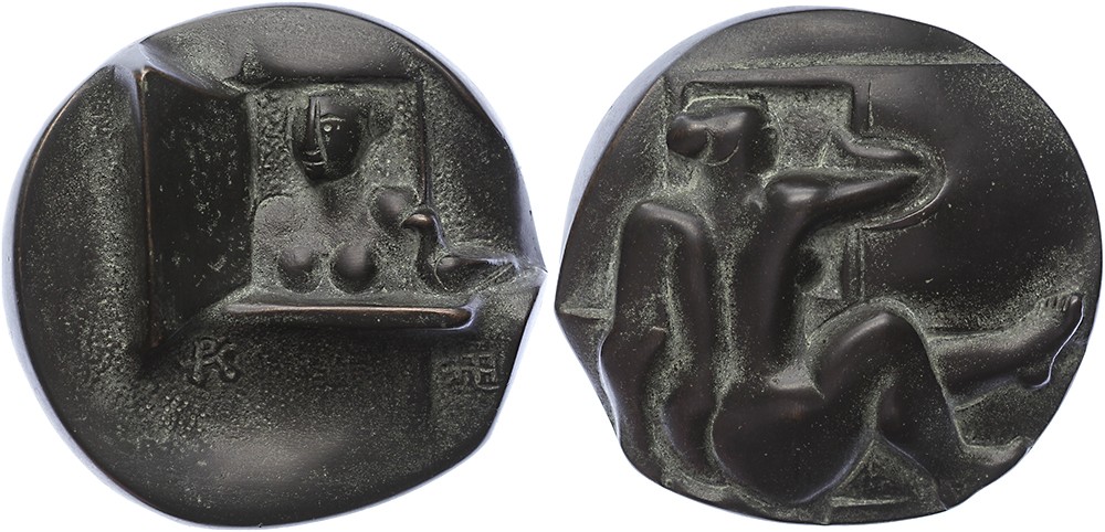 1991 Vrouw in raam. Vrouw kijkt uit raam; duif op de vensterbank. / Vrouw kijkt uit raam, op de rug gezien. Æ gegoten 80. Tilanus pag. 495-497. Fons Bemelmans. Prachtig.