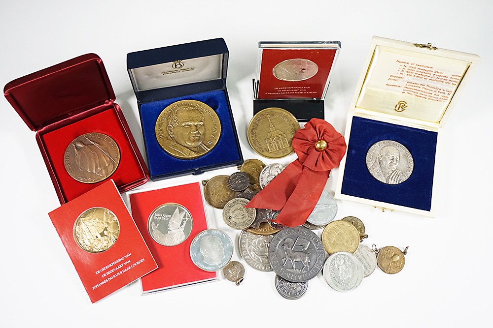 Chocoladedoosje (29) penningen/penninkjes met een religieus thema.