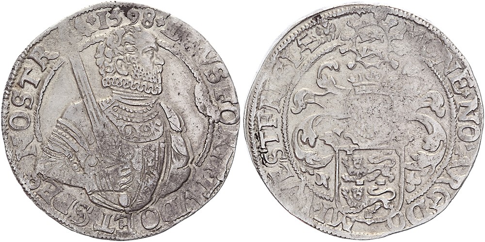 Gehelmde rijksdaalder of prinsendaalder 1598. Delm. 924; CNM 2.46.28; HPM 24. Fraai / zeer fraai.
