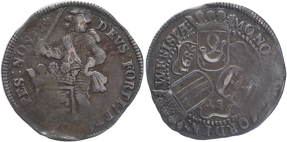 Daalder van 30 stuiver 1686. Delm. 1081; CNM 2.46.47; HPM 40. Zwakke slag. Fraai.
