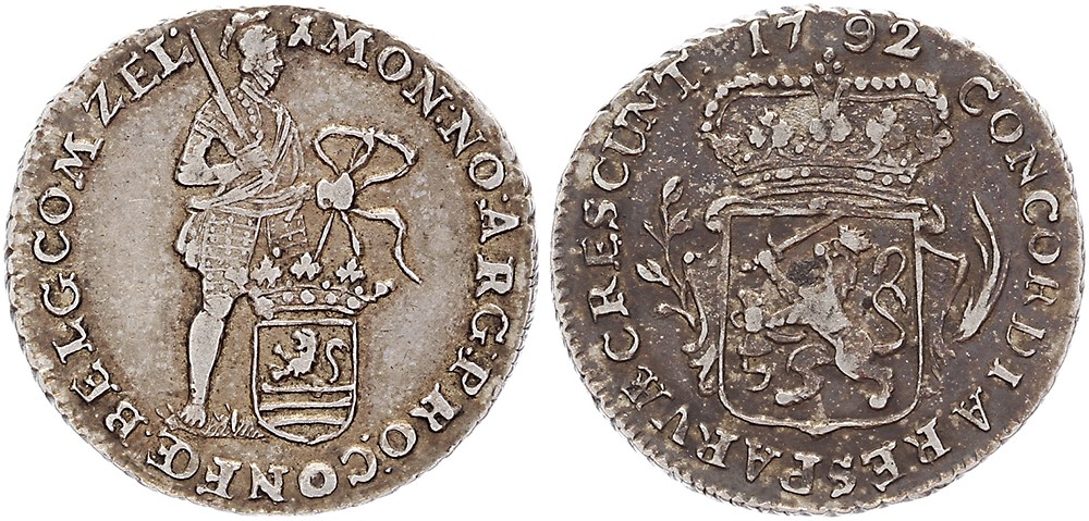 1/8 Zilveren dukaat of pietje 1792. CNM 2.49.55; HPM 54. Zeer fraai.