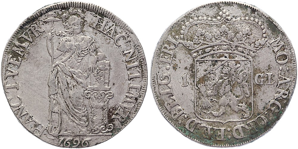 1 Gulden 1696. Delm. 1183; CNM 2.16.99; HPM 50. Vondstexemplaar, ongereinigd. Ca. zeer fraai.