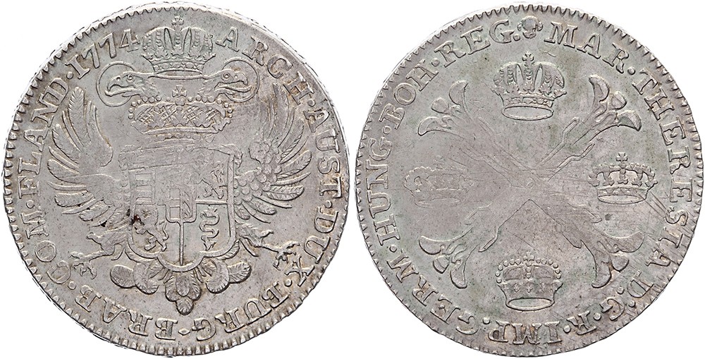 Kronentaler 1774 Brussel. Dav. 1282; Delm. 388; KM 21. Lichte justeersporen. Zeer fraai.