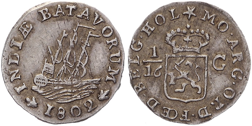 1/16 Scheepjesgulden 1802. Scholten 497b. Zeer fraai.