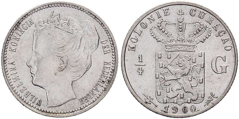 ¼ Gulden 1900. Scholten 1391. Prachtig.