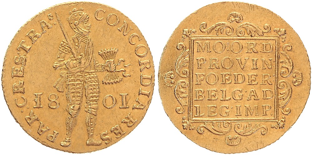 Utrecht. Gouden dukaat 1801. Schulman 37. Vrijwel prachtig.