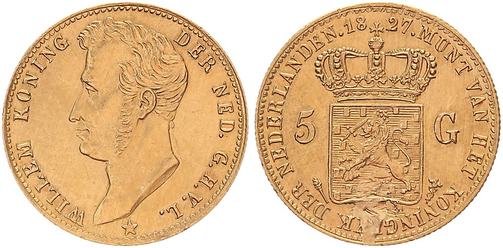 5 Gulden 1827 Utrecht mmt. fakkel Sch. 196 Montagespoor onder wapen Ruim zeer fraai