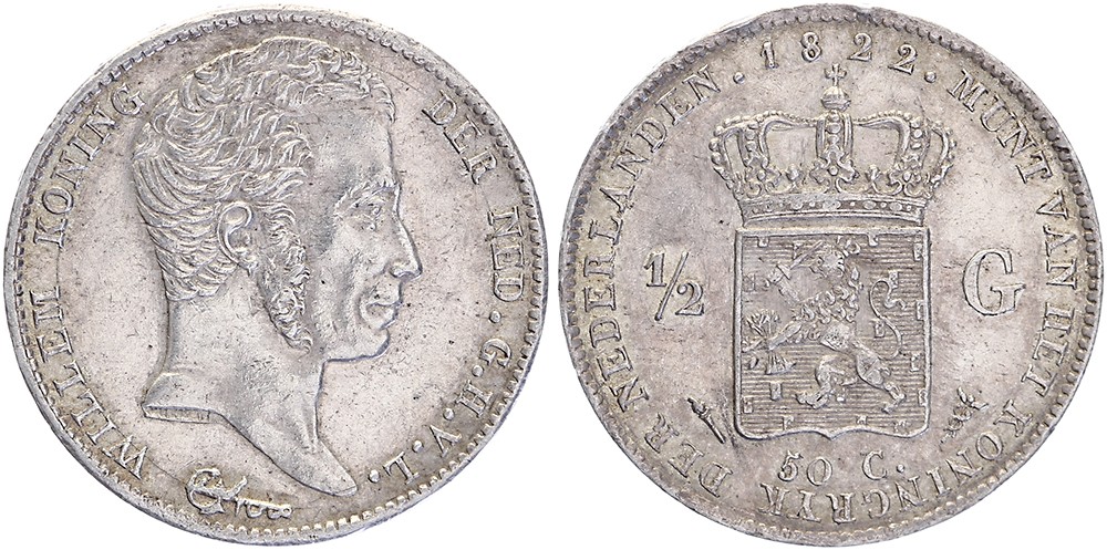 ½ Gulden 1822 Utrecht mmt. fakkel Sch. 281. Enkele letters MICHAUT zichtbaar Prachtig