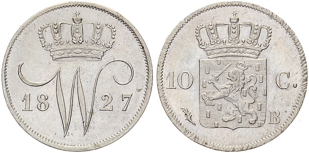10 Cents 1827 Brussel mmt. palmtak Sch. 312. [muntslag] Ruim zeer fraai