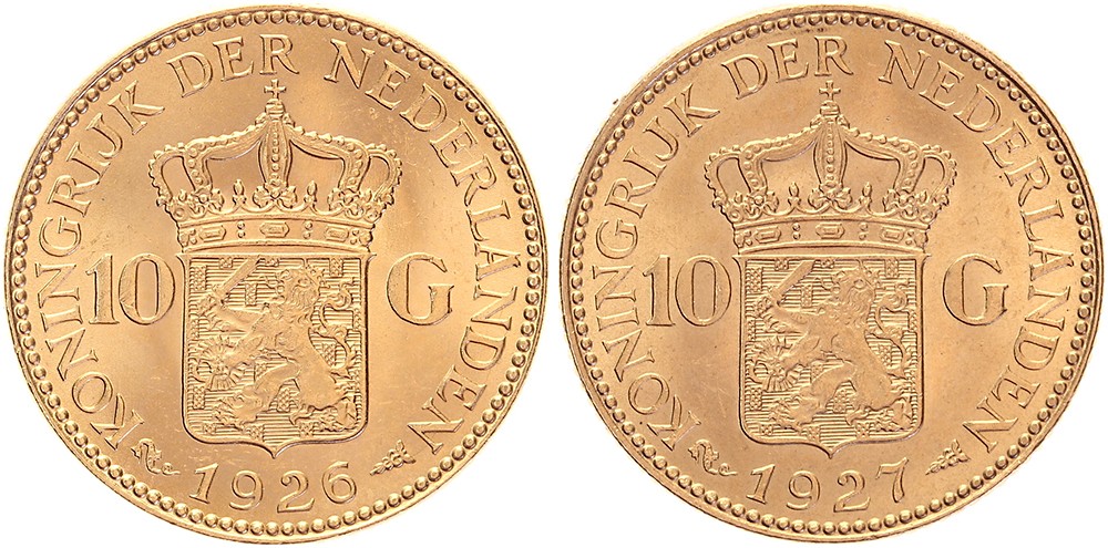 Lot (2) 10 Gulden 1926 en 1927 Sch. 750, 751 Prachtig