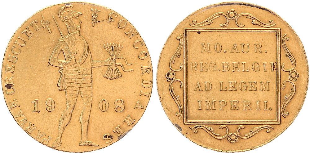 Dukaat 1908 mmt. hellebaard Sch. 762. Klemsporen Zeer fraai