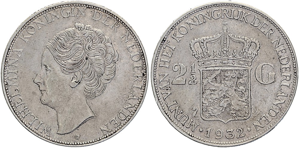 Rijksdaalder 1932 mmt. zeepaardje Sch. 787a. Grof haar Zeer fraai