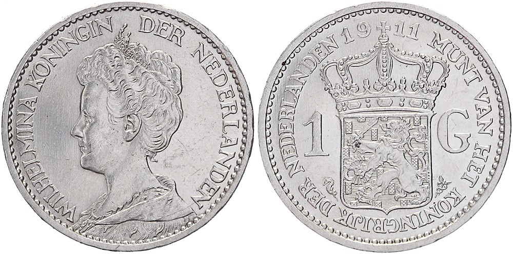 1 Gulden 1911 mmt. zeepaardje Sch. 813 Pr / Bijna FDC