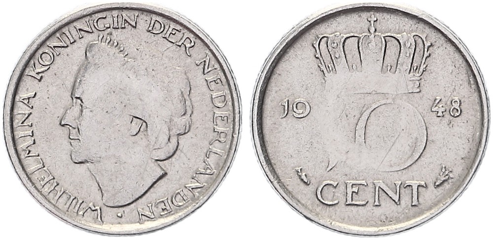 10 Cent 1948, keerzijde curieus [1,46 gram]. Zeer fraai.