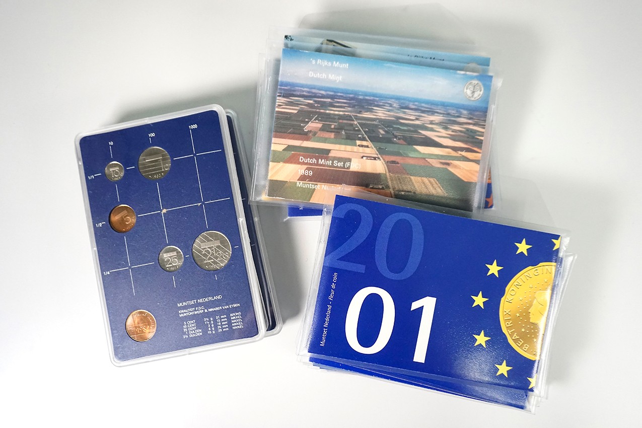 Doos met 21 FDC-sets Nederland 1982 t/m 2002. Compleet en opeenvolgend.