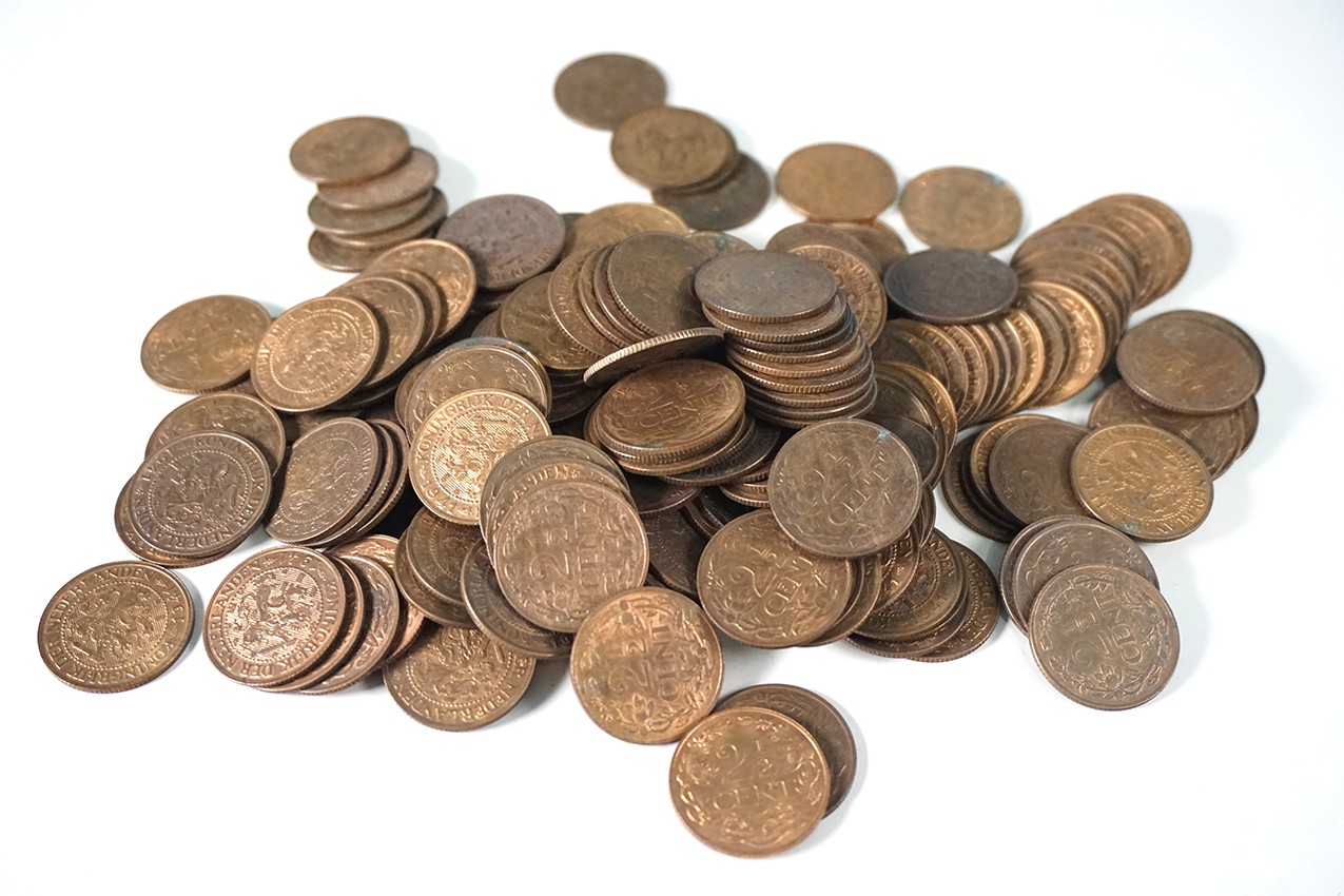 Blikje (180) bronzen 2½ centen 1941 in hoge kwaliteit; velen met gedeeltelijke originele kleur.