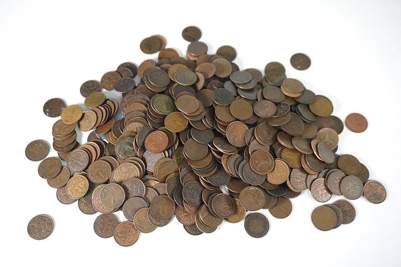 Rode langwerpige doos bronzen centen (540), klein type (1877-1943), w.o. 2 x 1907 en 5 x 1924.