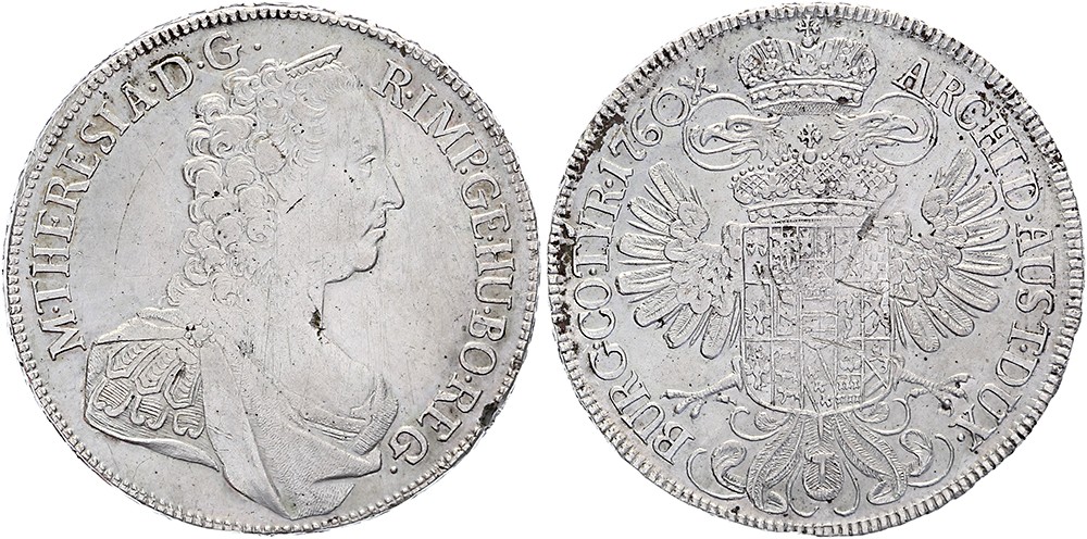 Taler 1760 Wien. Dav. 1112; KM 1817. Leichte Krätzer und Randfehler. Sehr schön.