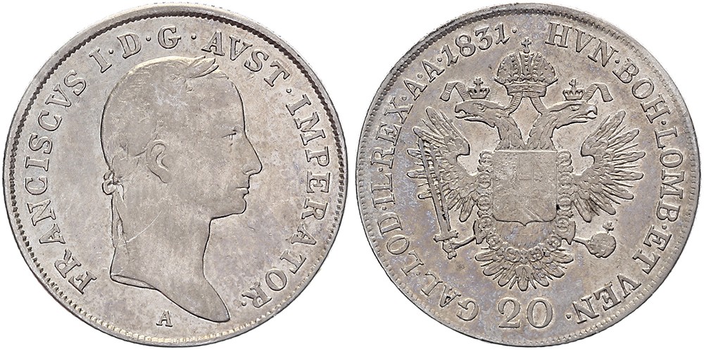 20 Kreuzer 1831A. KM 2146. Sehr schön / vorzüglich.