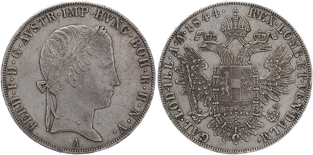 Taler 1844A. Dav. 14; KM 2240. Randfehler Rs. Sehr schön.