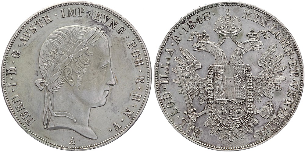 Taler 1848A. Dav. 14; KM 2240. Sehr schön / vorzüglich.