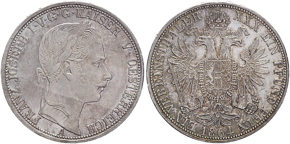 Taler 1864A. Dav. 21; KM 2244. Vorzüglich / Stempelglanz.