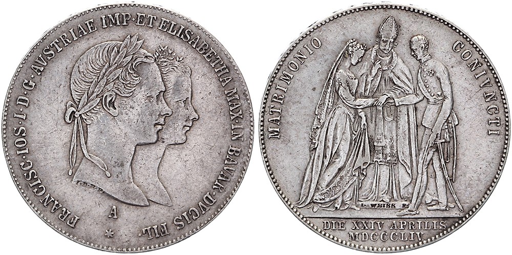 Gulden 1854 auf die Vermählung des Kaisers. Jaeckel 299; KM XM1. Vorzüglich.