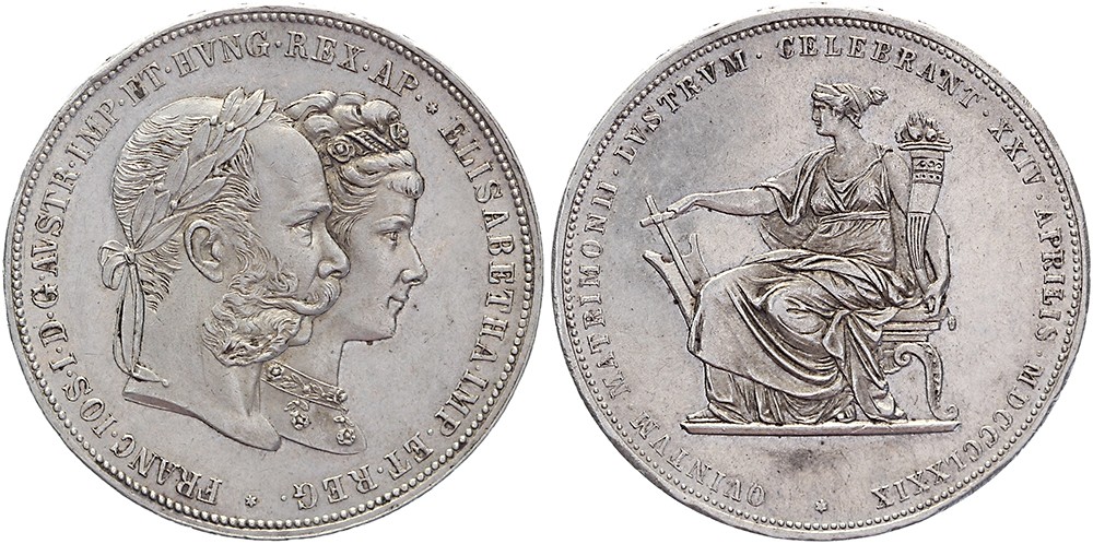 Doppelgulden 1879 auf die silberne Hochzeit. Dav. 31; KM XM5. Vorzüglich.