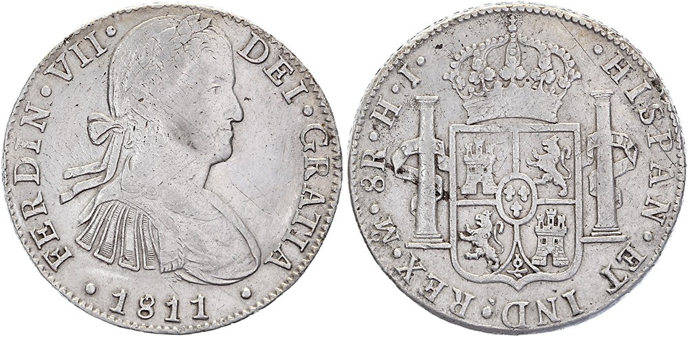 8 Reales 1811HJ. KM 110. Scratches reverse. F / VF.