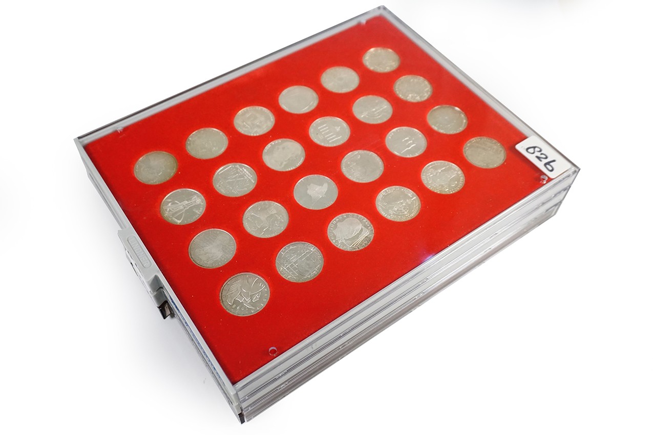 3 x Lindnertableaus met 61 stuks zilveren 10 Markstukken van Duitsland alsmede 11 stuks 10 Euro Duitsland.