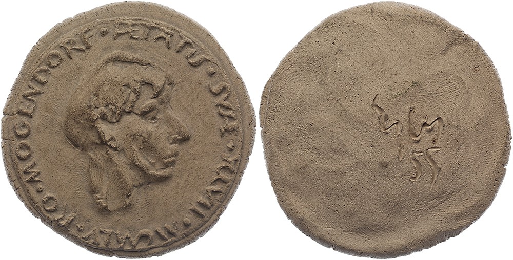 1955 Eénzijdig ontwerp in gips van Ro Mogendorff, schilder en tekenares, op 47-jarige leeftijd. Eenvoudige weergave hoofd naar rechts. Omschrift: RO MOGENDORF ÆTATIS MAE XLVII MCMLV / Afgekort jaartal + RM (Ro Mogendorff). Gips ca. 74 mm. Cat. Het Nederlandse Portret sinds 1880, Stedelijk Museum De Lakenhal, Leiden 1959; Beeldenaar 1979, pag. 105, nr. 22. (V.P.S. Esser). Zeer fraai.N.B. Rosa Catharina Mogendorff (Amsterdam, 21 juni 1907 – Laren 27 oktober 1969), was de schoonzuster van Albert van Dalsum. Zij was bevriend met Piet Esser en zijn gezin en tevens buurvrouw in de atelierwoning Zomerdijkstraat te Amsterdam. W.F. van Eekelen noemt deze penning een ‘kollegapenning’, iets wat zeer wel mogelijk is; gek genoeg is de achternaam van Ro verkeerd gespeld.Zie ook kavel 1033, 1049, 1140 en 1394 .