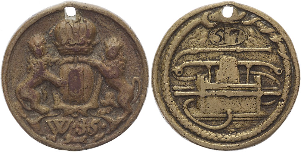 z.j. Brandspuitpenning Wijk 35, Nº 57. Messing gegoten 40,8 met pengat. Dirks plaat III-26; Minard II-120. Zeer fraai.