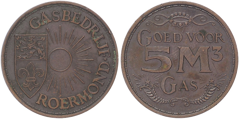(1959) Gaspenning voor 5 M³. Æ 23,5. Kooij GA 183.3. Tikje rand. Prachtig.