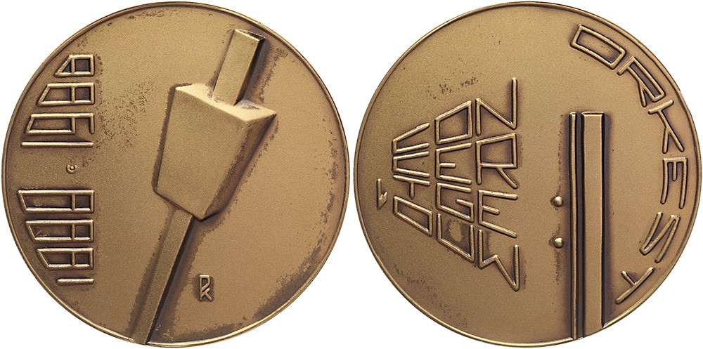 1988 Eeuwfeest concertgebouw- en orkest. Opschrift met muzieksymbool. / Slinger van een metronoom. Æ 70. Tilanus pag. 463-465. Eefke Cornelissen. Prachtig.