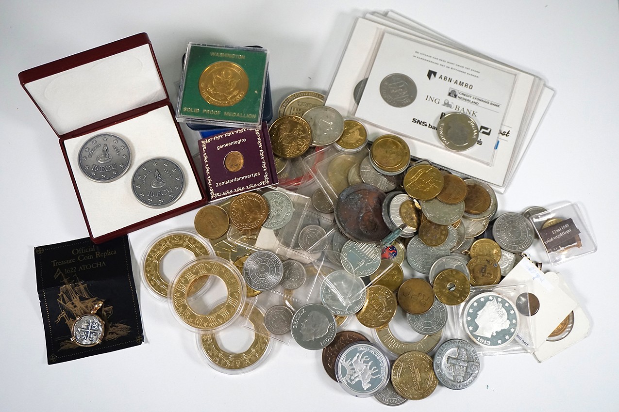 Doos met voornamelijk modern penningspul. Ook enig zilver en enkele buitenlandse.