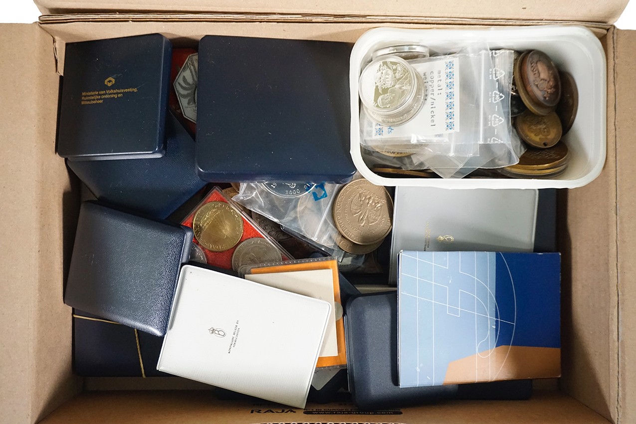 Groot lot penningen klein- en grootformaat, 19e/20e eeuw. Zeer divers. Enig zilver.