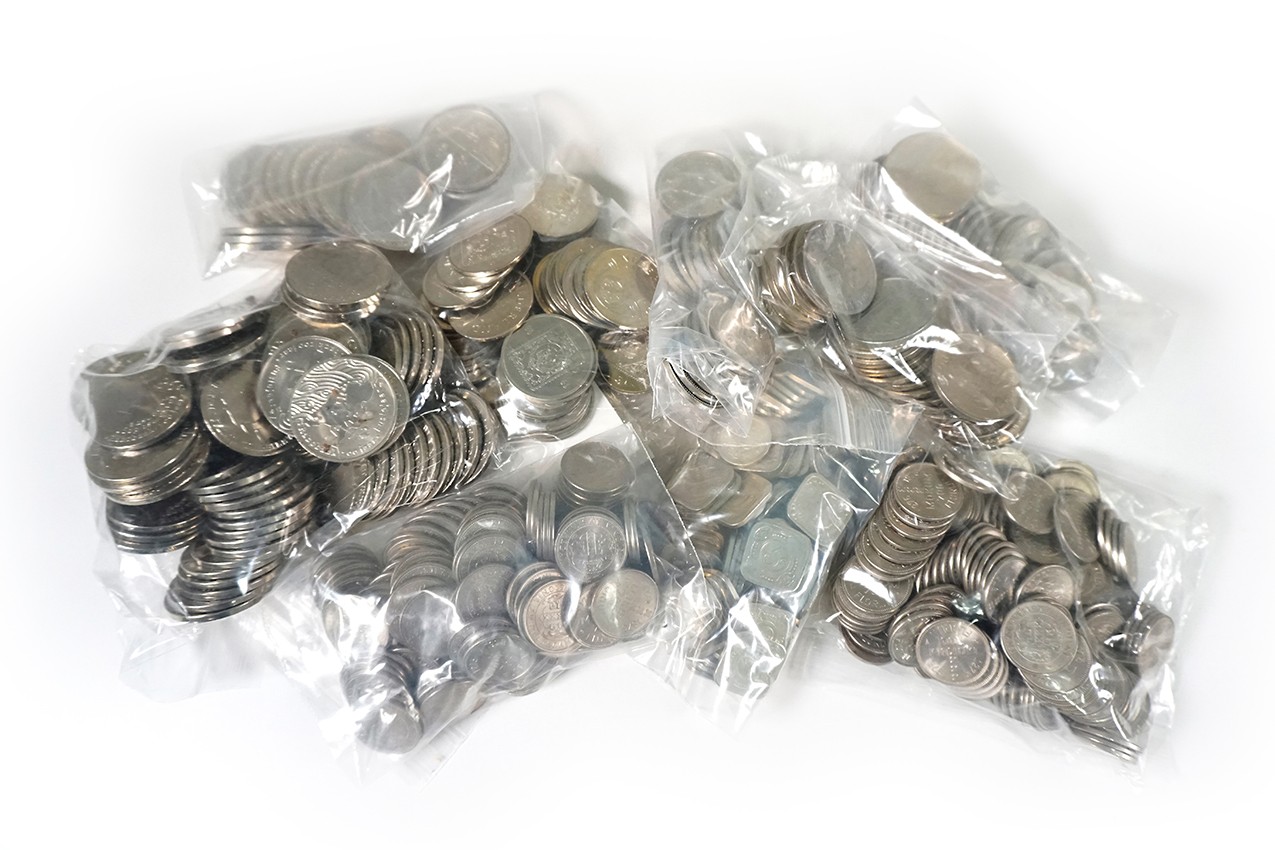Circa 4,5 kg. moderne kopernikkelen penninkjes: Eeuwfeest Rabobank, Geboorte Amalia, Huwelijk Willem-Alexander & Maximá, PTT Postzegels, Mokum 700, vierkante- en ronde nepstuivers, provinciepenningen etc.
