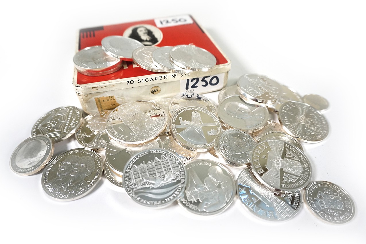 Blikje moderne sterlingzilveren penningen laat 20e / begin 21e eeuw. Netto zilver: 808 gram.