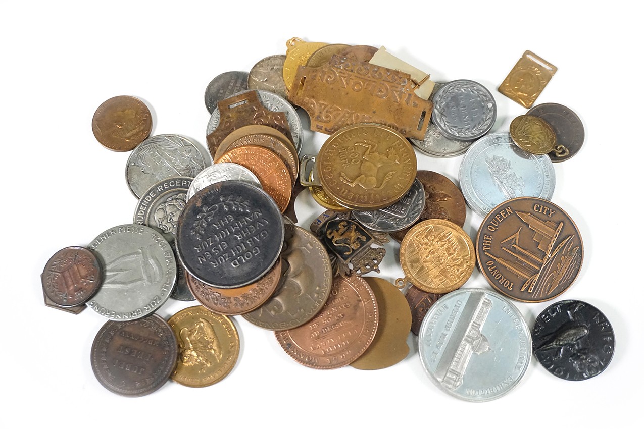 Plastic doosje (47) kleinformaat. Binnen- en buitenland, w.o. enkele zilveren.