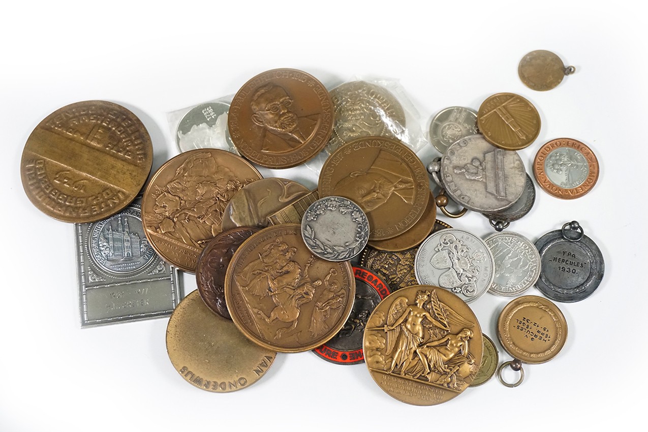 Bruin doosje met 28 eenvoudige penningen, doch wel leuk om te verzamelen!