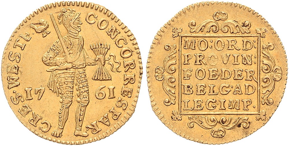 Dukaat 1761. mmt. haan. Delm. 838; CNM 2.46.16; HPM 05 [3,50 gram]. Prachtig.