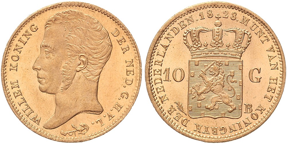 10 Gulden 1828 Brussel mmt. palmtak Sch. 194 Ruim prachtig