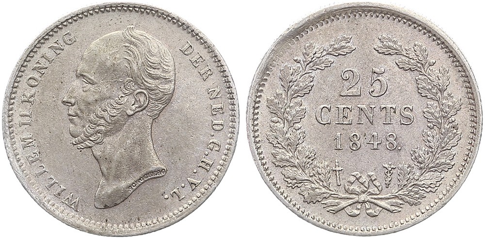 25 Cents 1848 mmt. zwaard Sch. 532 Zfr / prachtig