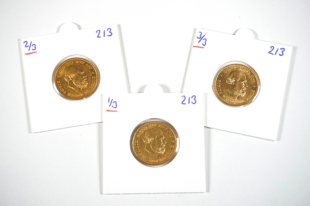 Lot (3) 10 Gulden 1875 mmt. bijl Sch. 549 Prachtig