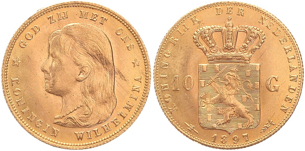 10 Gulden 1897 mmt. hellebaard Sch. 742 Prachtig / FDC