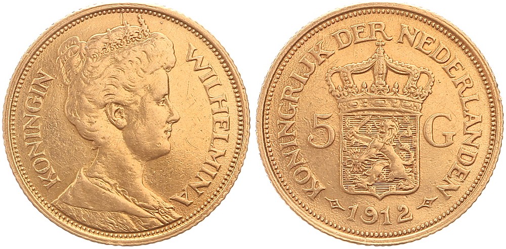 5 Gulden 1912 zonder mmt. Sch. 754 Zeer fraai