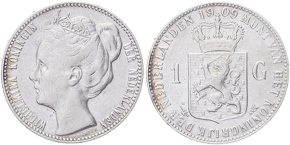 1 Gulden 1909 mmt. hellebaard + ster Sch. 811 Ruim zeer fraai